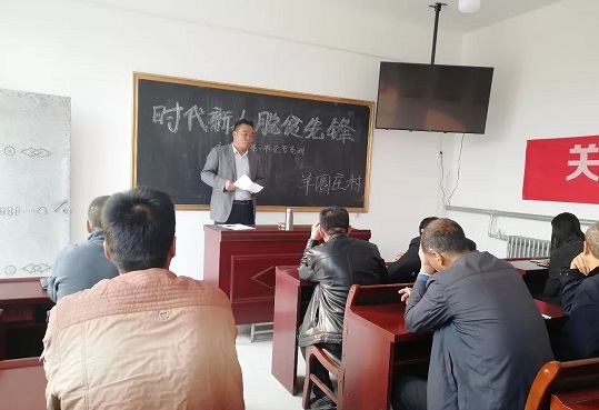 同時,集團公司的另一支扶貧工作隊來到對口幫扶村——廟灣鄉羊圈莊村進行入戶走訪慰問,認真了解了近期貧困戶政策落實、家庭收入及生活困難等情況,并送上了慰問品。集團公司駐村扶貧第一書記羅亮洲組織貧困戶在村委會的脫貧學堂開展了以“時代新人、脫貧先鋒”為主題的宣講活動,為大家講述了身殘志堅的貧困戶——韓買林的脫貧先進事跡,鼓勵貧困戶要自主脫貧,早日走在致富的大道上。