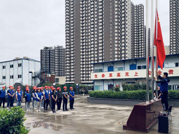 本次主題黨日活動共分升旗儀式、主題演講、宣誓、工作匯報四個部分。在升旗儀式中,干部職工齊唱國歌,向國旗行注目禮。項目經理武吉寶圍繞該工程的基本概況、施工組織、工程難點、施工節(jié)點四方面進行了匯報,并通過播放千峰路南延道路工程航拍視頻,全面直觀展示了工程基本情況。