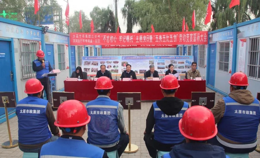 10月12日下午,市委住建工委委員、市住建局副局長、二級調研員石永明參加了太原市政集團第三工程公司在濱河自行車專用道工程一標段項目部召開的“不忘初心牢記囑托”主題黨日暨“五亮五比五創”勞動競賽誓師大會。集團公司黨委書記、董事長郝東輝,黨委副書記、副董事長、總經理溫慧武,黨委副書記、董事閆水平參加了活動。