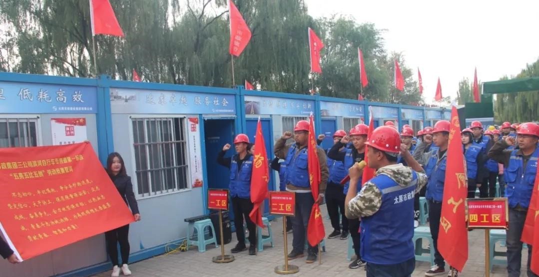 會上,三公司經理栗建軍介紹了濱河自行車專用道工程一標段工程概況及施工進展情況。該工程道路負責人、三公司副經理柳文斌宣讀了《太原市政集團第三工程公司濱河自行車道一標段“五亮五比五創”勞動競賽實施方案》。參會領導為以工區負責人姓名命名的5個工區授旗,全體參建人員進行集體宣誓。集團公司勞動模范、該工程橋梁負責人、三公司副經理郝俊軍分享了他的奮斗故事。第七工區負責人武瑞杰代表各工區進行表態發言,表示將自我加壓、勇挑重擔,為濱河自行車專用道工程決戰攻堅貢獻青春智慧和力量。