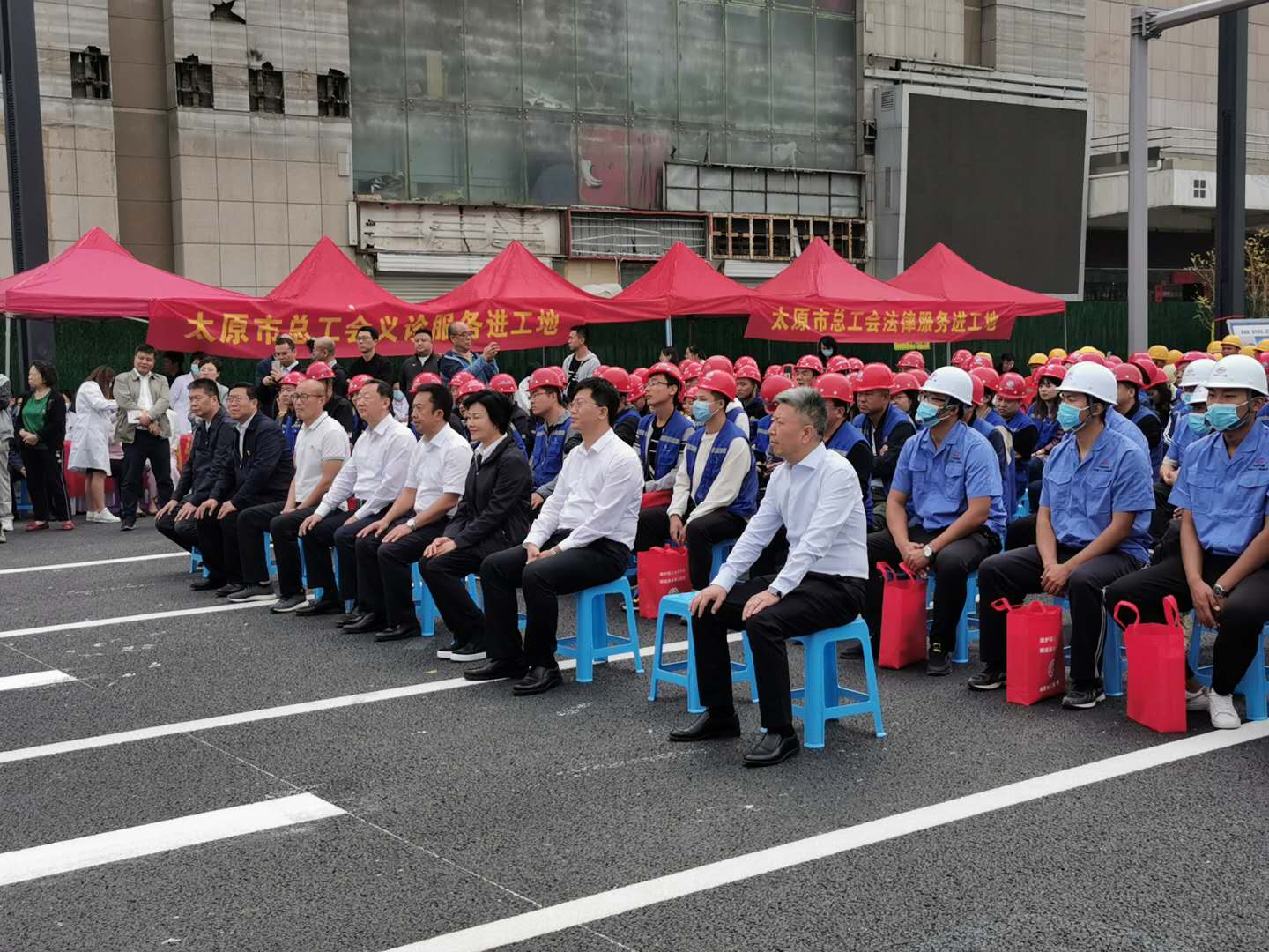 太原市總工會、太原市人社局“迎中秋、慶國慶關愛農民工系列活動”走進解放路改造工程工地