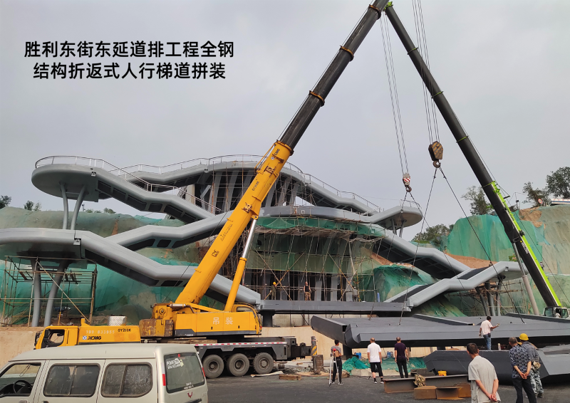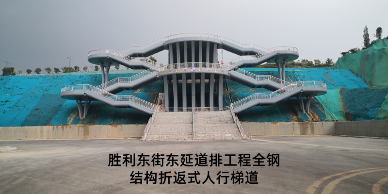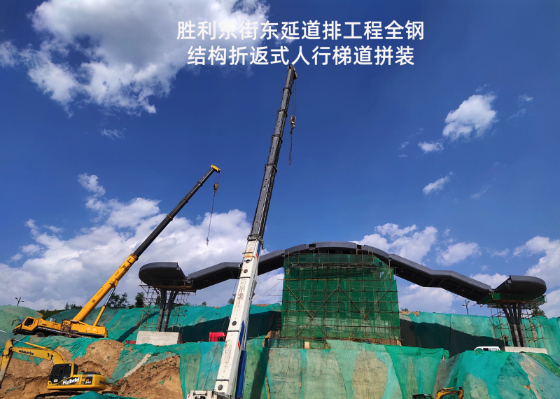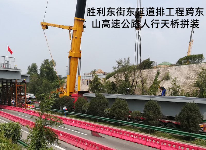 勝利東街東延道排工程起點東中環(huán)路,終點東山高速西側(cè)停車場,施工涉及污水管線、雨水管線、電纜隧道、電力排管、停車場一處,全鋼結(jié)構(gòu)折返式人行梯道一座及長52米,寬15米跨高速人行天橋一座。該工程建成后,成為市民通過橫跨東山過境高速和東峰路的“呂”字型人行天橋,更便捷從市區(qū)前往牛駝寨烈士陵園的一條新線路,八公司全體參建人員先后克服半幅封閉施工、高度落差大、結(jié)構(gòu)工程復雜等難題,順利完成了跨東山高速公路人行天橋、全鋼鋼箱梁結(jié)構(gòu)人行梯道的施工任務,以“市政實力”打造城市新名片。攻堅戰(zhàn)的硝煙漸漸散去,奮戰(zhàn)的場面依然清晰如昨,市政人甘于奉獻、勇于擔當?shù)木裼忠淮午澘淘谔鞘薪ㄔO的恢弘畫卷上。