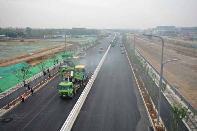 濱河?xùn)|路南延二期工程施工一標(biāo)段北起迎賓路,南至設(shè)計(jì)樁號(hào)K5+500,道路全長(zhǎng)約5.3公里,設(shè)計(jì)紅線寬為51.5-60米,施工內(nèi)容包括人行地下通道、排水、電力、下穿通道、高架橋、道路工程,于2021年12月開(kāi)工建設(shè),由一公司、三公司共同承建。該工程作為市重點(diǎn)項(xiàng)目,一公司強(qiáng)效組織、積極籌劃,確立“精心組織、精準(zhǔn)對(duì)標(biāo)、精細(xì)管理、精致施工”的理念,采取“分段管理”的施工方案,確立七個(gè)工區(qū),并安排專人負(fù)責(zé)各工段,形成全面開(kāi)花、相互協(xié)作的工作局面,大力提高施工效率。施工中,項(xiàng)目部錨定目標(biāo)節(jié)點(diǎn),制定施工計(jì)劃,冬季施工中認(rèn)真做好混凝土養(yǎng)護(hù)和保溫工作,有效防止混凝土凍裂;采用放坡和拉森鋼板樁+鋼支撐的支護(hù)方式,嚴(yán)格控制鋪筑厚度逐層回填夯實(shí),為施工奠定堅(jiān)實(shí)基礎(chǔ);合理調(diào)配110臺(tái)機(jī)械、854名施工人員24小時(shí)倒班不間斷作業(yè),最快一天連續(xù)鋪筑瀝青混凝土1800米,掀起“大干不停歇”的施工熱潮。2022年9月,一公司圓滿完成全部施工任務(wù),在全線七個(gè)標(biāo)段中名列前茅,為汾河?xùn)|岸再填一條平坦大道。三公司全體參建人員與時(shí)間賽跑,從各施工區(qū)域土方工程破土動(dòng)工,到墩柱、橋梁相繼“沖出”地平線,爭(zhēng)時(shí)間、搶進(jìn)度,是該工程第一個(gè)完成首聯(lián)箱梁澆筑的標(biāo)段。其中,橋梁工程是整個(gè)工程的重中之重,結(jié)合工程自身特點(diǎn),現(xiàn)澆箱梁采用滿堂紅盤扣式支架法進(jìn)行施工,大大提高了模板安裝精度和施工質(zhì)量,降低了模板、腳手架的安裝難度;項(xiàng)目部嚴(yán)格把控瀝青混凝土鋪設(shè)這最為關(guān)鍵的一步,攤鋪機(jī)勻速前進(jìn),刮平后立即檢查,及時(shí)進(jìn)行人工充分壓實(shí)。項(xiàng)目部肩負(fù)光榮使命,齊心協(xié)力戰(zhàn)疫情、斗風(fēng)沙、頂驕陽(yáng)、冒暴雨,及時(shí)排除項(xiàng)目建設(shè)過(guò)程中難點(diǎn)、堵點(diǎn)問(wèn)題,以腳踏實(shí)地的努力,保證了一個(gè)個(gè)節(jié)點(diǎn)目標(biāo)的如期完成,確保施工進(jìn)程“不歇步”,合力攻堅(jiān)、全速推進(jìn),用敬業(yè)和擔(dān)當(dāng)詮釋了實(shí)干精神,彰顯了市政人“闖”的精神,“創(chuàng)”的勁頭。