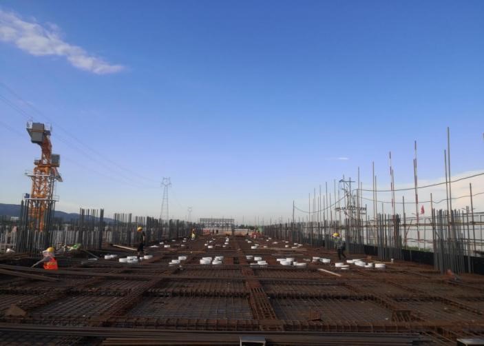 該工程目前正在進行滿堂支架的搭設工作,由于工程支架架體最高高度為17米,支架體量大。為保證高大模板施工安全,項目部組織相關技術人員編寫了《高大模板支撐系統安全專項施工方案》,并通過了專家論證,細化了高支模模架支撐體系施工工序、施工要點。項目部全面考慮施工過程中的荷載,設計模板及支撐體系方案時按規范等有關要求進行驗算,保證其具有足夠的強度、剛度和穩定性,能可靠地承受施工過程中可能產生的各項荷載,為后續混凝土結構施工的順利進行提供了堅實的保障。