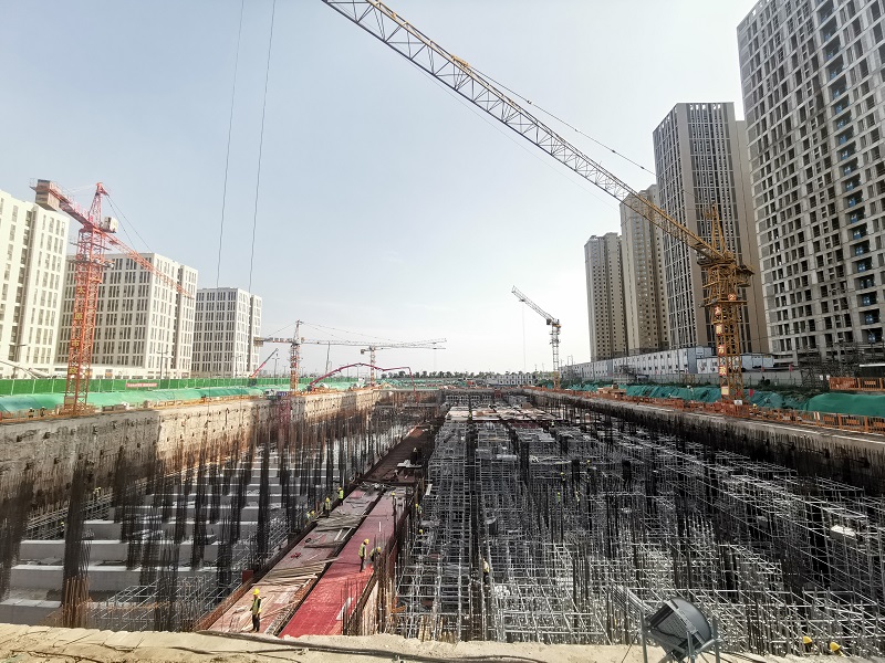 自開工以來,項目部從工程前期的超前謀劃、要素保障,到建設中的部署落實、節點把握,先后按工期節點目標完成了三軸攪拌樁、地下連續墻、冠梁、錨索、底板等重點工序。在施工建設開足馬力的背后,正是依靠項目部一項項“硬核”組織保障的強力支撐。同時,項目部建立健全以項目經理為責任人的質量安全管理體系,緊盯目標任務,搶抓時間節點,強管理、抓落實、促進度,統籌部署人員配置、材料供應、機械保障等方面,全體參建人員壓實崗位責任,采取“白+黑、5+2”模式,緊跟節點不松勁,加班加點確保各工序有序推進,同頻共振點燃助推項目發展的強引擎。