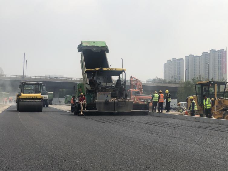 面對工期緊、任務重等情況,項目部不等不靠、見縫插針,緊抓一切施工有利時機,快速推進該工程東段道路下面層和中層瀝青混凝土鋪設作業。由于瀝青攤鋪施工受到雨水天氣、環保管理等因素影響,項目部結合實際組織施工,狠抓現場管理和過程控制,確保施工質量、進度等各項工作處于時刻受控狀態。施工中,項目部超前部署、提前著手,調配攤鋪機、壓路機、運料車等機械,做好各項準備工作,并要求施工人員嚴格把關各道工序,協調推進攤鋪進展;施工人員緊盯現場,全程跟進攤鋪過程,確保整體攤鋪質量。同時在該工程的西段施工現場,管線施工、路基平整、路側石砌筑等工序在作業面同時開展,有效壓縮工序間的銜接時間;在管線施工中,項目部重點部署溝槽回填施工,嚴格保障回填質量達到規范要求。