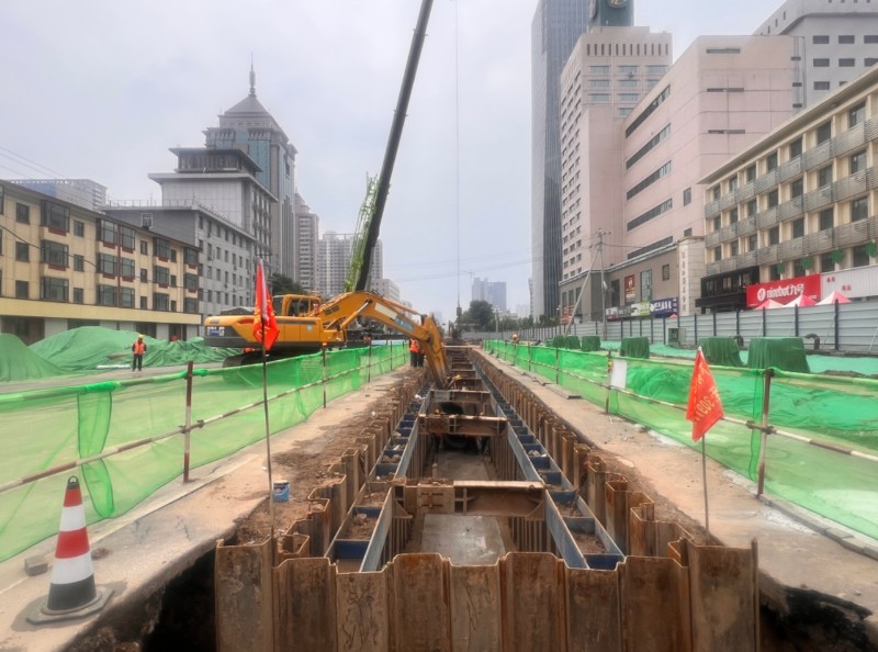 新建路地下管網(wǎng)更新改造工程施工過程中,太原市政集團(tuán)全力克服管線復(fù)雜與工期緊迫的雙重挑戰(zhàn),科學(xué)統(tǒng)籌工期計(jì)劃,優(yōu)化配置施工資源,嚴(yán)把工程質(zhì)量細(xì)節(jié),加速推進(jìn)項(xiàng)目建設(shè),全力推進(jìn)地下管網(wǎng)“煥新”。截至目前,該工程已完成鋼板樁支護(hù)4810米,三軸水泥攪拌樁支護(hù)579米,雨污水溝槽開挖616米,降水井74座。