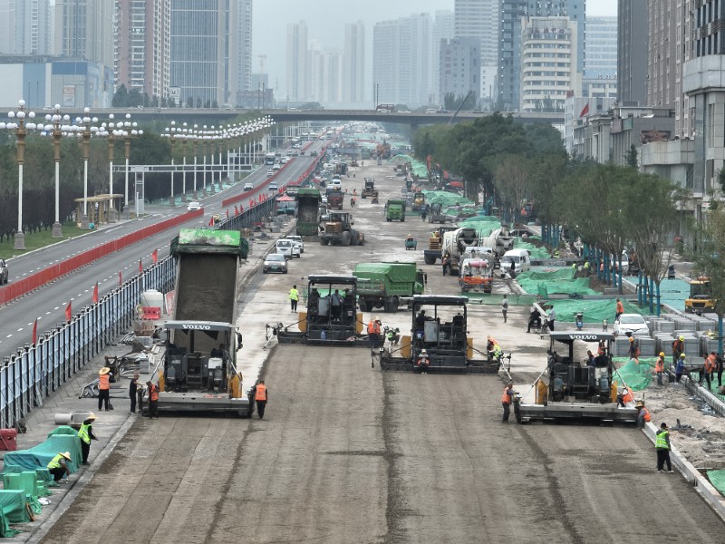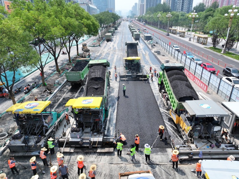 太原市政集團堅持“精準、精細、精致”施工理念,始終以“零容忍”態度對待質量細節,以“全過程”思維把控施工環節,緊盯鋼板樁支護、溝槽回填、水穩瀝青攤鋪、花崗巖鋪裝等關鍵環節,全力打造既擁有堅固挺拔內在骨架,更展現靚麗宜居嶄新面貌的城市主干道。全周期筑牢地下“安全防線”,嚴格控制鋼板樁施打全過程,按照“先支后拆、分段拔除”原則有序進行,最大限度減少土體擾動,實現安全施工與環境保護和諧統一;全流程精控管網“堅固壁壘”,重點控制基底處理質量,對軟弱地基進行換填加固,采用分層回填工藝,及時進行壓實度檢測,真正做到“一層一驗、壓實到位”;全方位筑牢道路“內在骨架”,采用機械化作業模式,嚴格執行“先輕后重、先邊后中、先慢后快”規范流程, 全程緊盯拌合、運輸、溫度等關鍵環節,精準控制標高與平面位置,保障各工序銜接無縫順暢;全環節細究扮靚“民生畫卷”,嚴格執行材料遴選標準,采用“試鋪—校正—精鋪”工藝流程,確保接縫寬度保持均勻一致,達到平整美觀、堅固耐用的質量要求。