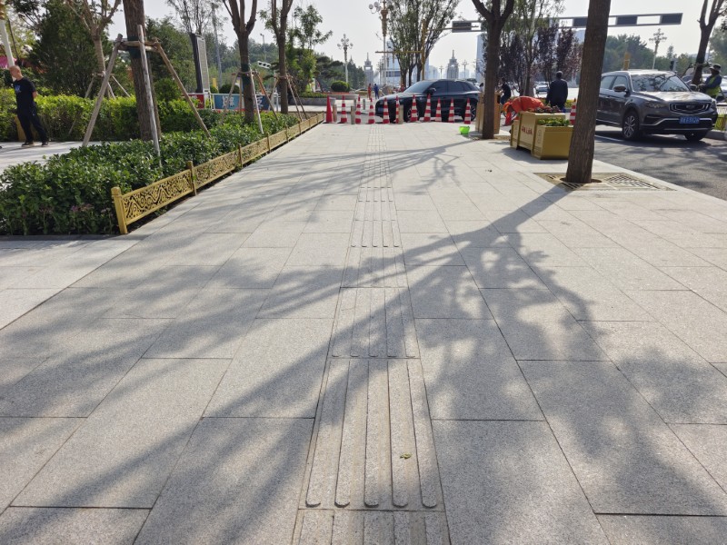 漫步在嶄新的大街上,目光所及之處,皆是精益求精的印記。道路之舒,成于“毫米級”的精準把控。施工期間,測量員們頂著烈日反復校驗基準線,施工人員緊盯碾壓遍數、實時檢測溫度變化,精準調控機械參數,細致觀察路面成型狀態,以雕琢藝術品的嚴謹,執著于每一寸路面的平整度。如今,瀝青路面黝黑發亮,平整如鏡,為市民提供了平穩舒適的出行體驗。這背后,是無數次的測量、復核與調整,是對“毫米級”標準的執著追求。路面之穩,源于看不見的“精細打磨”。以往容易產生異響和顛簸的檢查井蓋,如今,它們已與路面完美契合,渾然一體。市政人創新工藝,全程采用三米直尺嚴格檢測井具與瀝青路面的銜接平整度,對井周進行精細找平加固,顯著提升了行車安全與舒適度。設施之雅,藏在細節里的“民生溫度”。道路品質不僅在于行車體驗,更體現在人性化與美觀化兼具的附屬設施。人行道磚平整牢固,灌縫飽滿均勻;路緣石鋪設筆直如線,接縫打膠平滑嚴密;阻車樁全面清潔,堅實穩固;迎澤大街石磚鋪設,描畫精細,字跡清晰。游園新增的石桌石凳、柔和地燈等設施,打造了溫馨舒適的開放空間。建成后的迎澤大街(西段)“口袋公園”便民化、街角綠地景觀化、公交站臺智能化……已然成為市民閑庭漫步新去處。