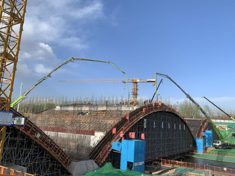 該橋采用單跨72米連續5跨設計,主腹拱作為橋梁的核心承重結構,是此次橋梁施工的核心節點,項目團隊順利克服弧形施工、模板一次成型、大體量澆筑、五跨精準落架等挑戰,以“毫米級”精度貫穿施工全過程,為橋梁成型打造堅實“筋骨”。