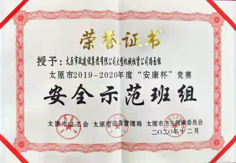 4月8日,租賃公司路面組榮獲太原市2019—2020年度“安康杯”競賽安全示范班組榮譽(yù)稱號(hào)。