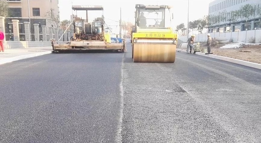 太原南站東廣場配套路網工程光明東街與北營南路工程下面層瀝青攤鋪已全部完成